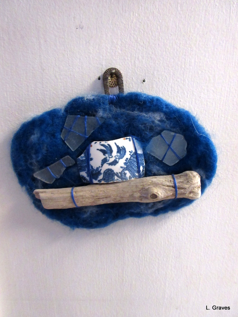 There is a lovely blue wall ornament that my blogging friend Shari made and sent to me.