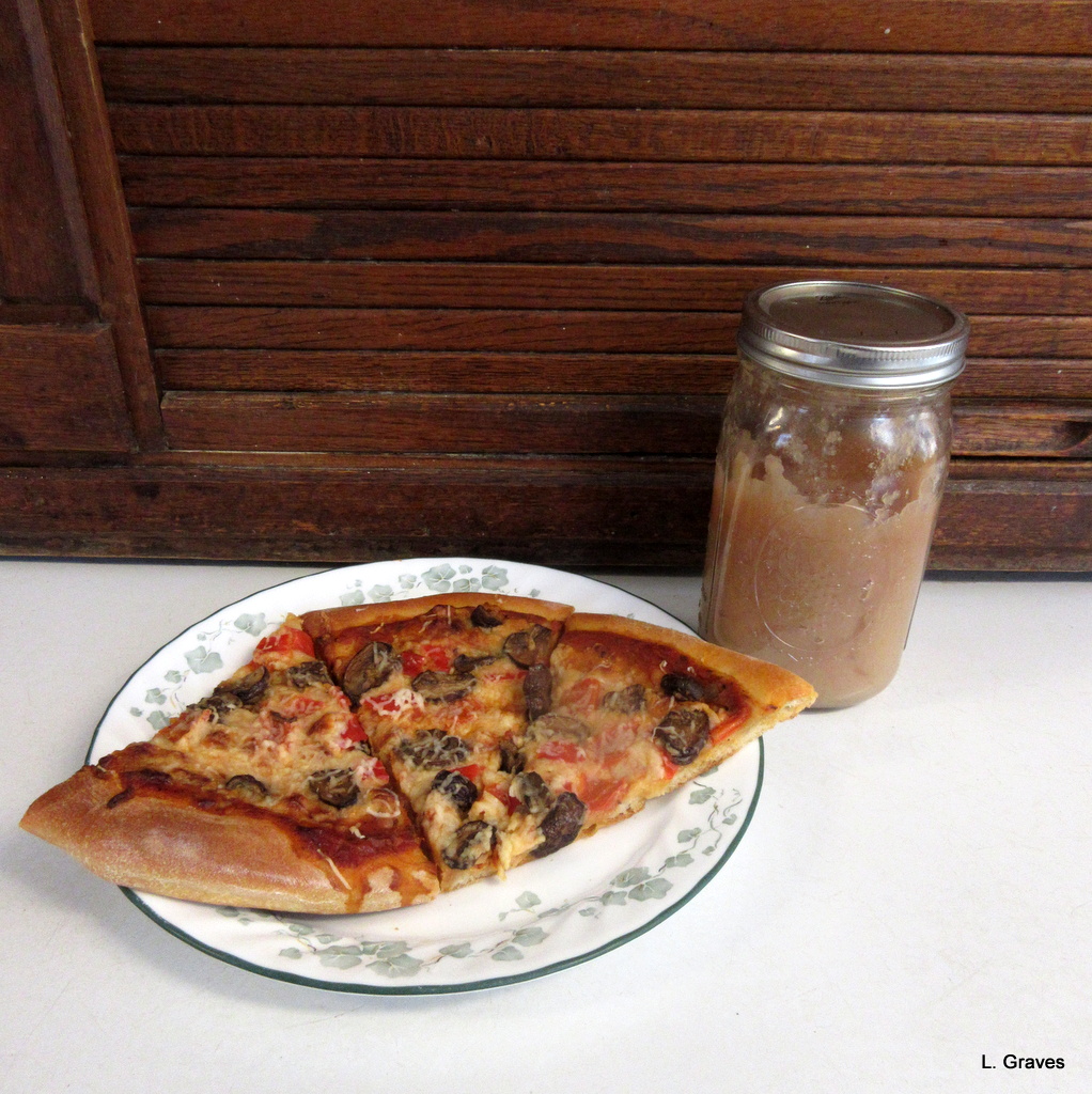 On Saturday, our friend Diane came over for lunch, and Clif made his tasty pizza. As a hostess present, Diane brought a jar of her delectable applesauce, made from old-timey apples from an orchard in southern Maine. Those apples are so sweet and so good that the sauce doesn’t need any sugar. What a treat!