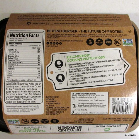 We have a mid-sized grocery store near our house, and not long ago they started carrying Beyond Burgers. The Beyond Meat website describes these burgers as “[t]he world’s first plant-based burger that looks, cooks, and satisfies like beef without GMOs, soy, or gluten.”