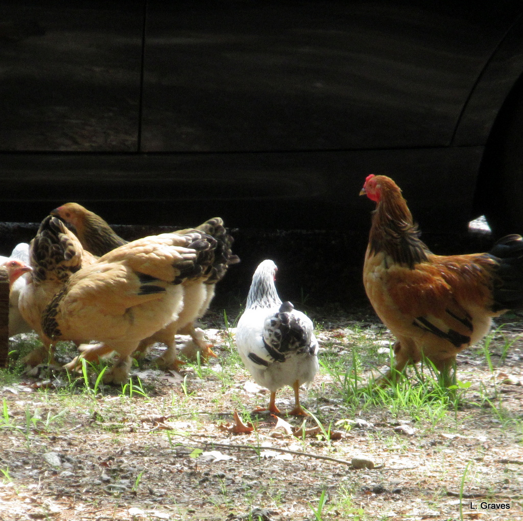 Next door, the dog has stopped barking, and the little boy no longer runs and yells as he plays. But earlier in the week, the chickens scratched and pecked in the yard.