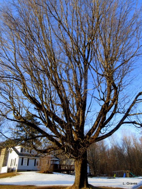 Just up the road from us is a magnificent tree that was horribly damaged during the Great Ice Storm of 1998. After the ice storm, the tree looked as though it had been maimed. (Unfortunately, I don’t have any pictures of the tree when it was in that sorry state.) Even though this tree is not on our land, we love it dearly and worried about it.