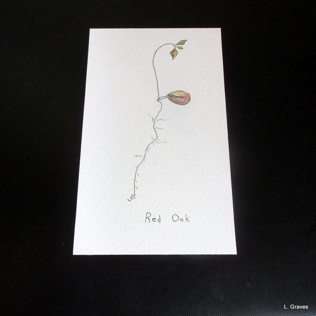 Right beside the Liam card is a sweet, delicate water color by Dawn, yet another blogging friend. On the back she wrote, “Enjoy the little oak.” I surely am.