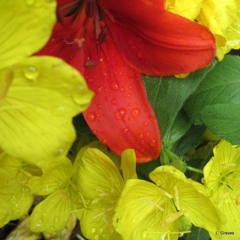 Pretty! I’ve never tried to crop square, though I’ve seen people doing it lately. I like the orange lily among the yellow green of the other blossoms.