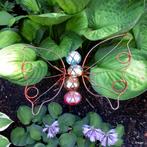 This little butterfly is most obliging. She poses patiently as I take picture after picture and doesn’t even mind being moved. The butterfly was a gift from my mother-in-law, who has been dead for 15 years, which means the butterfly has been gracing my gardens for at least 20 years. She’ll continue to do so as long as I’m gardening.