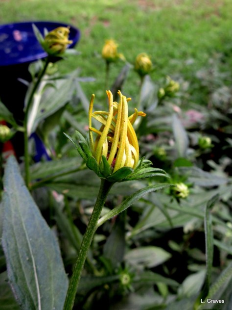 On the edge of blooming are the black-eyed Susans, that lovely flower of late summer.
