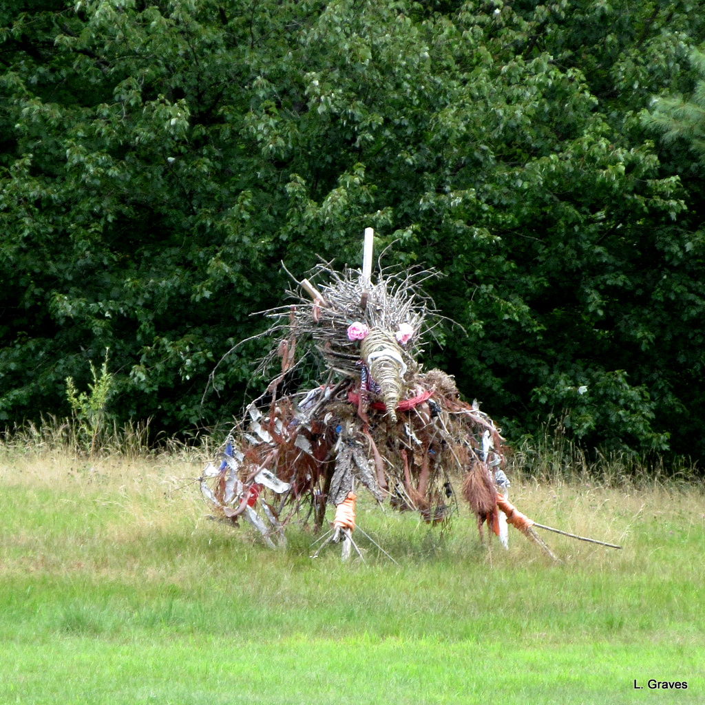 This one is more of a wicker creature, benevolent and created to cheer up the neighborhood. And that it did!