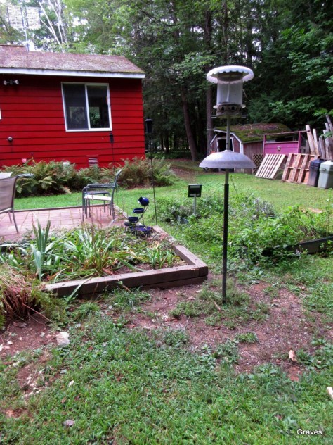 Here is what our yard looks like two days after a big tree came down, doing very little damage to the things we love.