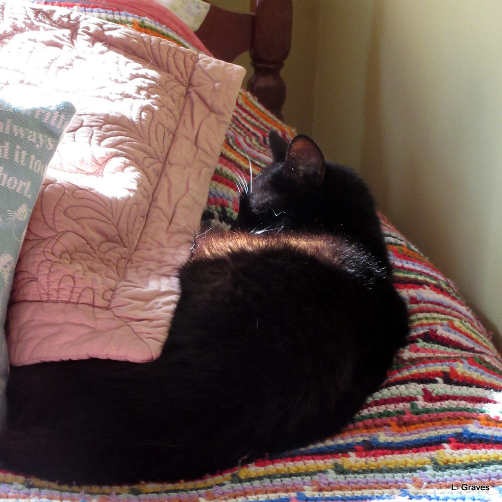 This looks just like my black cat. I always love how she looks like a puddle of black ink. Cats have a talent for grace and we need to be more catlike and take cosy afternoon naps!I always enjoy your photos.