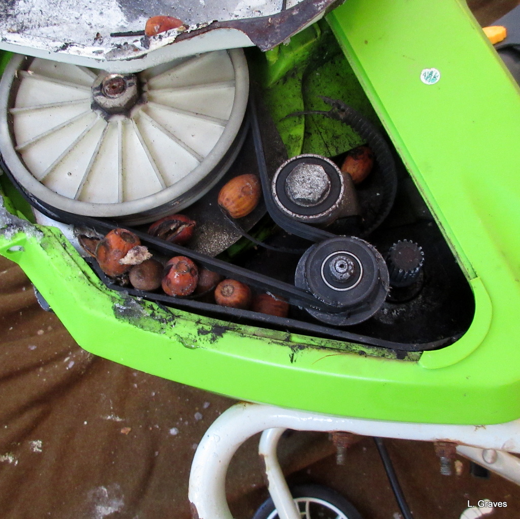 Those acorns snapped both belts, which is why Little Green wouldn’t throw snow.