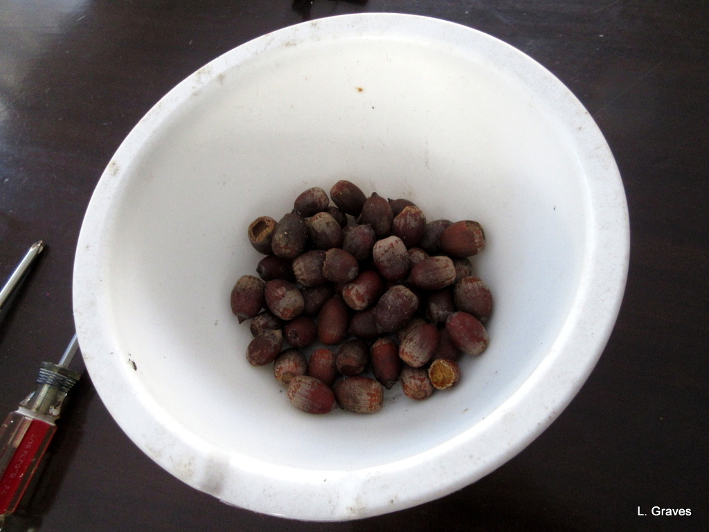 There’s some debate about whether a squirrel or a woodpecker did this, but every time I hear one of these acorn stories, it comes to mind again. It’s a reminder that it could have been worse!