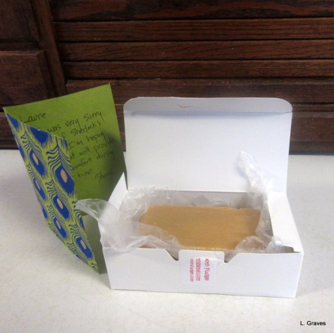 The fudge and card was a beautiful gesture from Shane! Sherlock was dear kitty. ❤