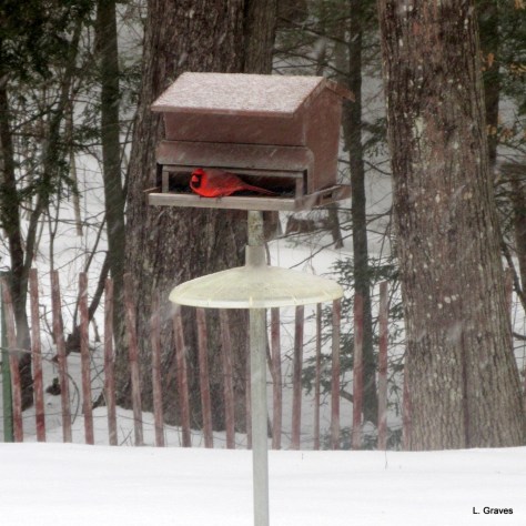 Cardinals! I do miss them, they don’t come this far west. They do look beautiful on a snowy background.