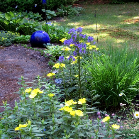Love the combination of yellow evening primrose and blue Jacob’s ladder.