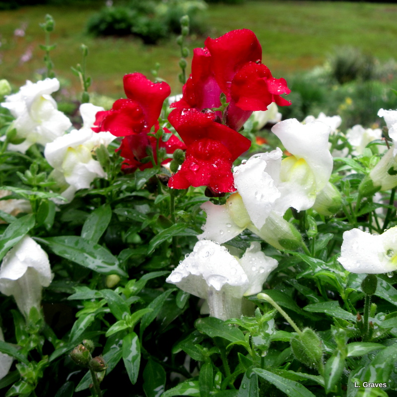 I’ve been seeing a large number of those jeweled webs in the mornings. It probably means something — maybe an early winter?? — but I don’t know. I didn’t plant snapdragons this year, and I miss them; yours are pretty.