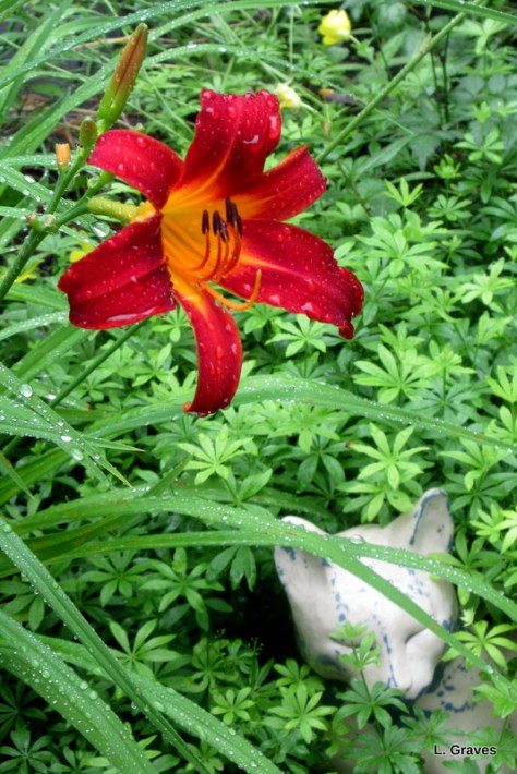 Sometimes I’m ambivalent about rain during the week, because it means I can’t work, and I’m always ambivalent about rain on the weekend, especially if it’s hard enough to keep me and the camera indoors. On the other hand, a rainy day with open windows and birdsong — and that wonderful rainy fragrance — is a real treat. Even truck tires sound better on a rainy road!