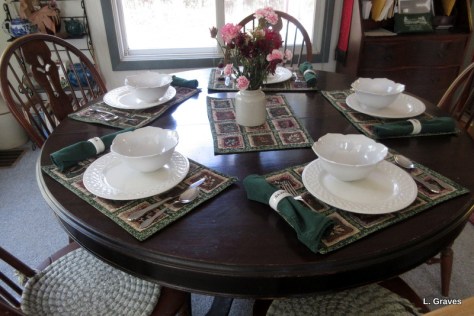 Although we like to keep things simple, we do like a pretty table, with flowers as the centerpiece.