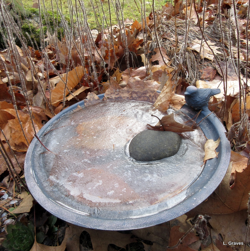 Outside, the snow has all melted, and the gardens are in a strange in-between state, not quite fall, not quite winter. There’s still plenty of green on the lawns, but one morning there was a skim of ice in the ornamental bird bath.