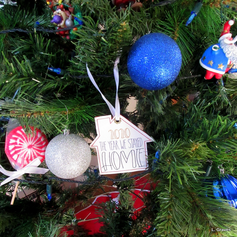 Still, it gives me pleasure to put up our ornaments—some plain, some silly, some old, some new, some poignant. The house ornament was made by my blogging friend Judy of New England Garden and Thread. 2020 was indeed the year we stayed home, and to me the ornament is a lovely reminder of all the ways we stayed in touch during that first terrible pandemic year. Many thanks, Judy.
