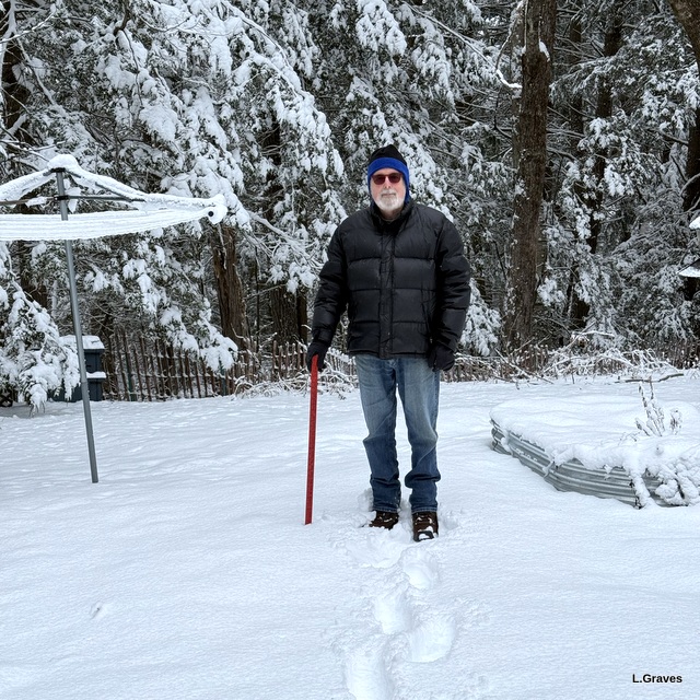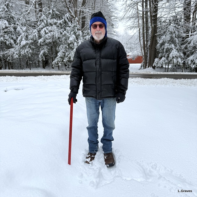 This morning, wearing boots and heavy coats, Clif and I headed outside for snow-gauge pictures.