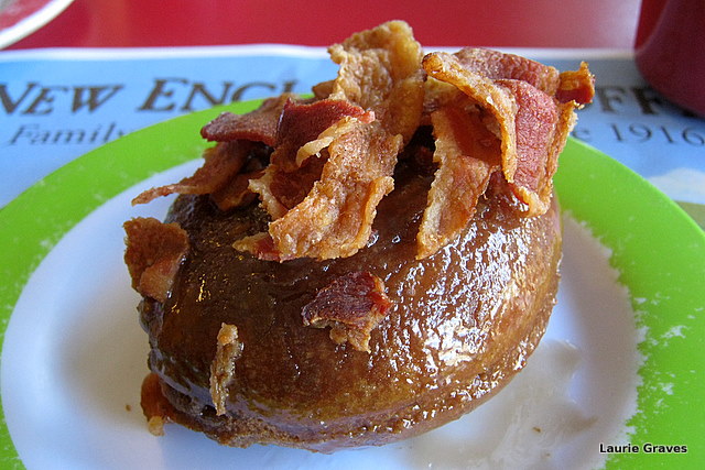 Clif decided to go whole hog, so to speak, and ordered a maple bacon donut. It seemed to me that this was perhaps a step too far down the donut-topping path, but Clif liked it so much that he didn’t even offer me a bite. That donut was gone in a flash.