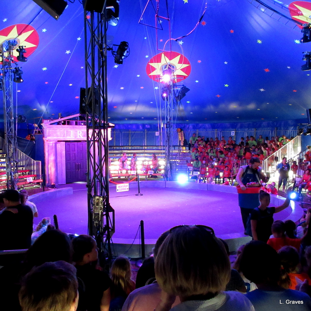 For me, the thrill started as soon as we had parked, and I caught a glimpse of the big circus tent, which transported me to the days of my own youth and the magic of fairs and circuses. It didn’t hurt that the tents featured my favorite color—blue.