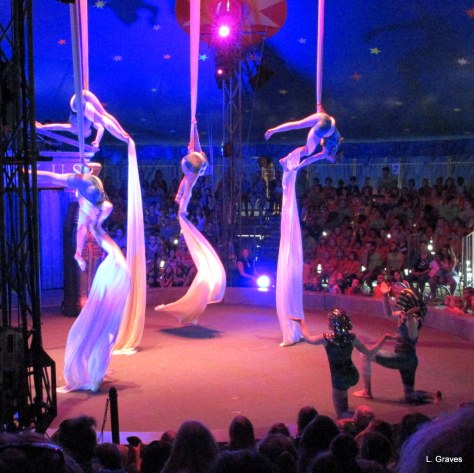 Two other things of note: There was live music, where the musicians reacted to what was happening in the ring, and the whole show had very nice pacing, with acrobats followed by clowning followed by jugglers.
