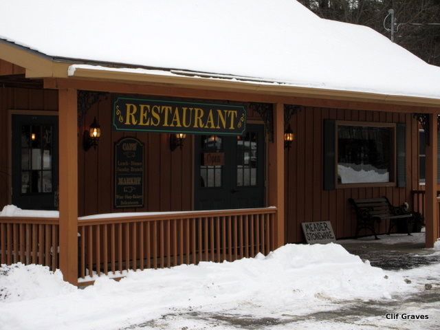 Inside, it was warm and cozy. Clif ordered a burger, and I ordered a chicken pesto sandwich. Both were delicious. When we were done, not a bit of food remained on our plates.