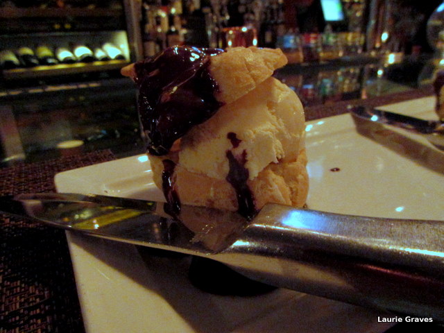 Was there room for dessert? You bet there was. We ordered profiteroles—a fancy word for cream puffs—filled with vanilla ice cream and drizzled with chocolate sauce.