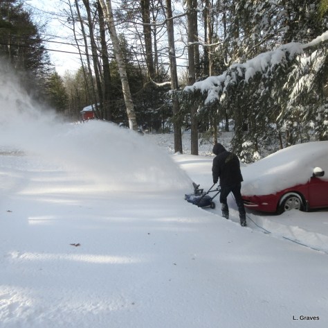 The worst part of clearing the driveway after a good-size storm is what we call the wall o’snow left by the town plow at the end by the road. If you click on the picture to enlarge it, you’ll get a better sense of wall o’snow.