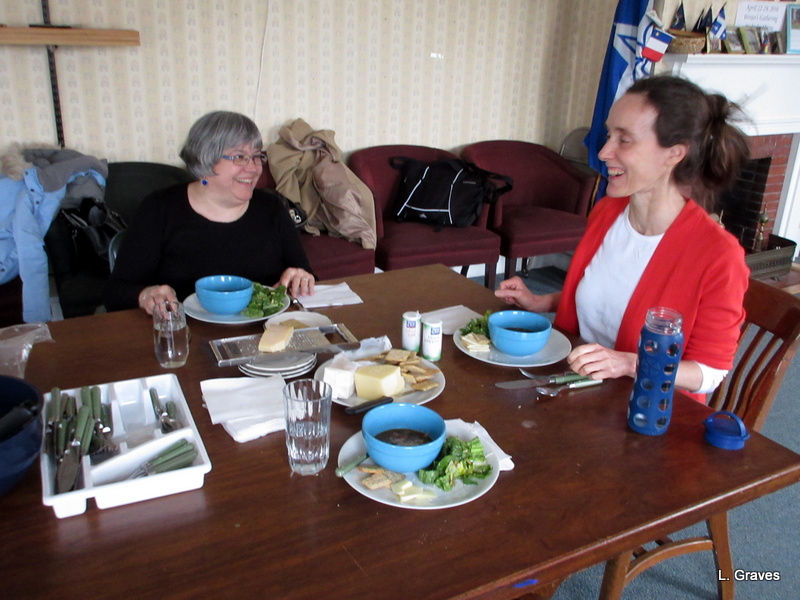 How lovely it was to sit around the big table at the Centre and eat delicious lentil, vegetable soup. Being Francos, Susan and I did a lot of chatting and laughing as well as eating. (Susan is the woman at the head of the table.)