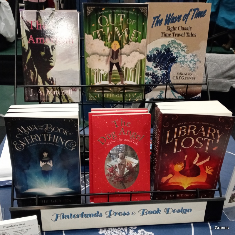 Last weekend, Clif and I took our books to a big craft fair in Gorham, over an hour from where we live. Neither Clif and I are morning people, and we had to get up at God-awful-o’clock in the morning to go to Gorham and set up before the show opened. This we did, with only a bit of fuss. After all, Clif and I are no longer spring chickens. Even with a cart, lugging boxes of boxes, the table, and chairs is a lot of work for us.