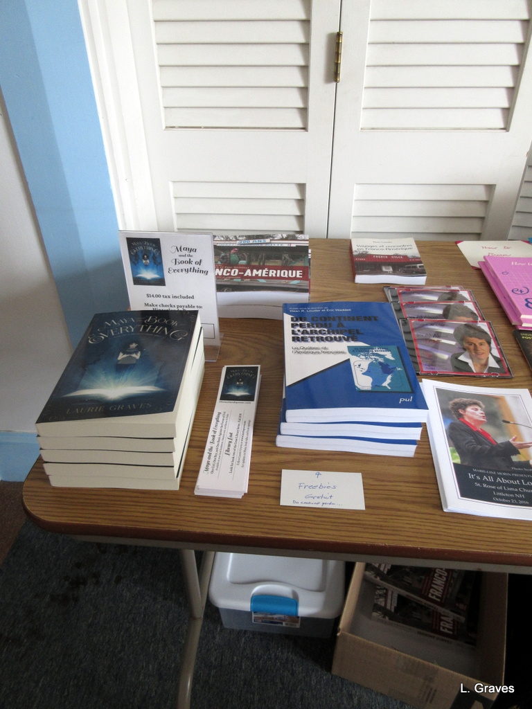 I help edit the creative non-fiction pieces. In this volume, there are a variety of essays, ranging from an account of the author’s ancestor arriving in Canada in 1662 to a humorous piece about a mouchoir (a handkerchief) to a reflection of nature and trauma to a reckoning of how French is spoken in Maine rather than in France.