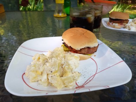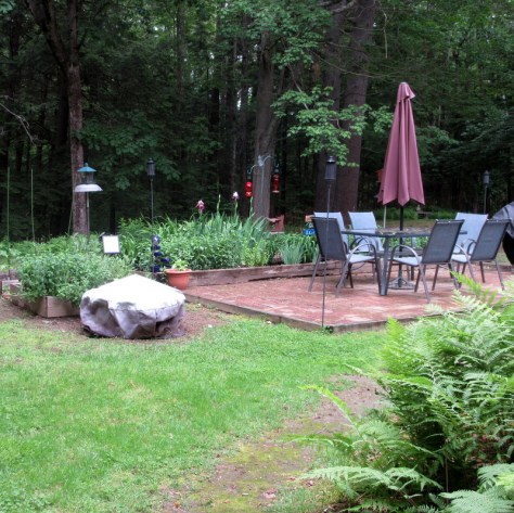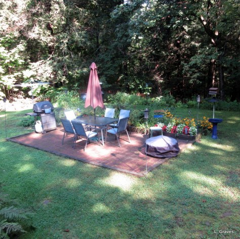 Despite the rainy summer, Clif, Dee, and I have managed to slide in many lunches and suppers on the patio. Because of the rain, the mosquitoes are still a nuisance—most years they are gone by August—but we have citronella torches to help with the problem.