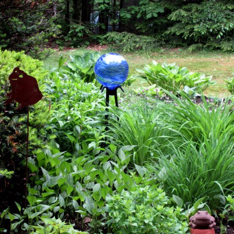 And to further cheer myself up, I took a picture of black-eyed Susans against the blue gazing ball.