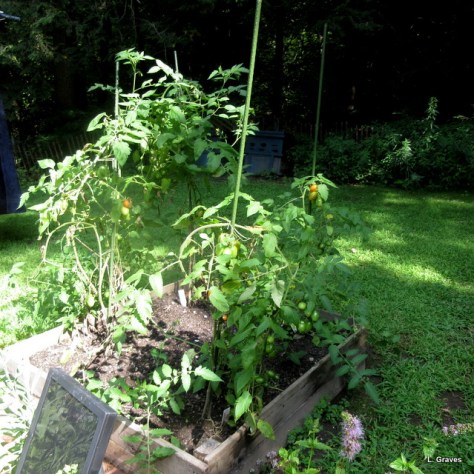 The cucumbers have been a complete bust—stunted and producing only two fat, stumpy cukes that were inedible. The tomatoes have fared a little better, but they are not as lush and productive as they have been in previous years. Instead, they are tall and spindly with not much fruit.