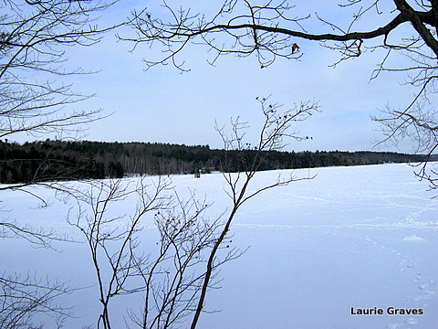 On my way home, I stopped by Maranacook Lake, wanting to take pictures of the ice village that springs up every winter—fishing shacks that don’t come in until the spring thaw makes the ice unsafe. As I took pictures, the sun warmed my face, and I needed neither hat nor gloves to keep me warm.