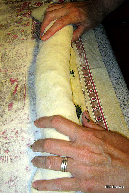 We are into the first week of August and the eighth week of Farmer Kev’s CSA program. Eight more deliveries to go. I must say that developing and sharing a recipe each week has really stretched me as a cook. (It seems that old dogs really can learn new tricks.) My friend Alice Johnson has been a big help, and her stuffed bread has become a favorite with Clif. My personal favorite is a quiche with zucchini and basil—a recipe I’ll share next week. I’m not sure I would have made either of these dishes if I hadn’t been writing for Farmer Kev. Thanks to him—and Alice—I have two new recipes that will become staples in our house.