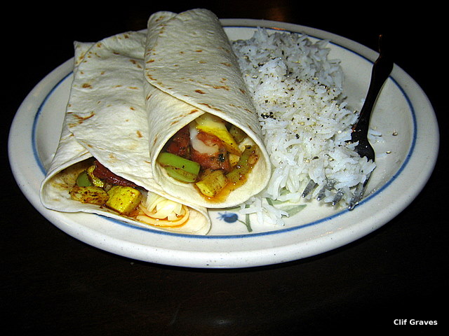 Why not indeed? That night, Clif was available to help in the kitchen, and he diced the squash and the peppers. We wanted them small so that they would easily fit in the small tortillas we had. I minced some garlic, which is my go-to allium, and I use it many, many dishes. Unfortunately, raw or lightly cooked onions upset my stomach, and I use garlic as a substitute for onion. So please note: In most of my recipes that call for garlic, onion could be substituted. (Fortunately, I can eat onions that have been simmered a long time, say, in a soup or tomato sauce. But still, this intolerance is a pain, and I consider it a food handicap.)