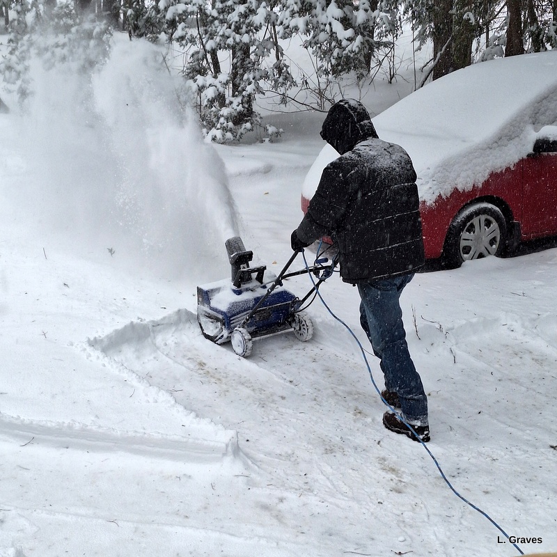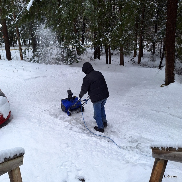 To clean the driveway, Clif had to use our trusty electric snow-thrower, Snow Joe.