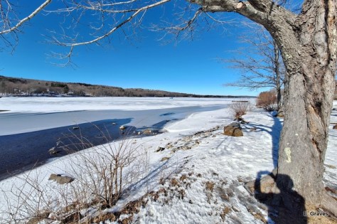 I don’t know. And yesterday, while I still admired the lovely view, I had a shiver of apprehension, of change coming so rapidly that even a generation ago, when my parents were young, it would have been inconceivable to have open water on a Maine lake in February.