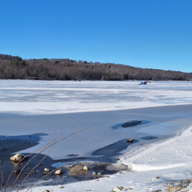 Not so this winter, which has been warmer than average, when storms in December have brought rain and flood rather than blizzards. How much longer, I wonder, will people be able to go on the ice to set up their shacks?