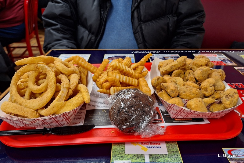 On Friday, before the storm, we took the afternoon off and had a fried day. Both Clif and I love fried food, and we are lucky enough to have a digestive system that easily handles this kind of food. (I know from previous comments that not all my blogging friends can eat fried food.)