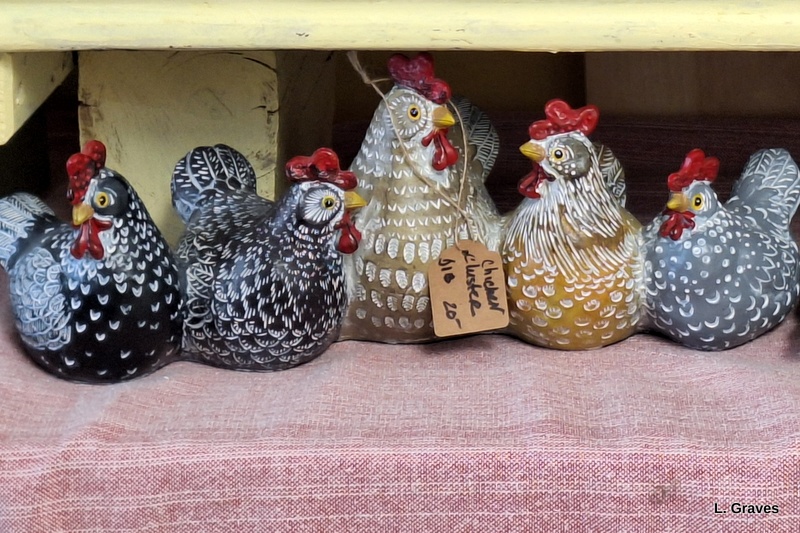 If my house didn’t already have an—ahem—abundance of ornaments, those chickens would be coming home with me. I can almost hear them clucking to each other.