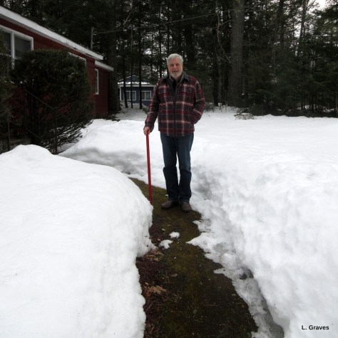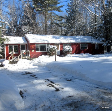 And our backyard looks very wintry. Birds, in great numbers, are visiting the feeders. If you look closely, you can see a few juncos on the snow. The other day, Clif and Dee thought they might have seen a red-headed woodpecker, very rare for central Maine. I have never seen one and will be on the lookout.