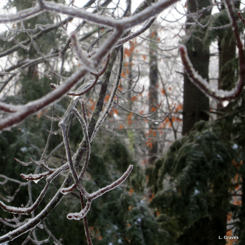 In the middle of the week, we had a little ice storm, but fortunately we did not lose our power. Clif went out and took some pictures.