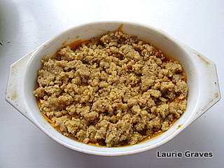 As far as preparations go, everything is right on track. The green bean casserole, minus the butter-crumb topping, is ready. (The butter-crumb topping will be sprinkled on top just before the casserole goes in the oven.)
